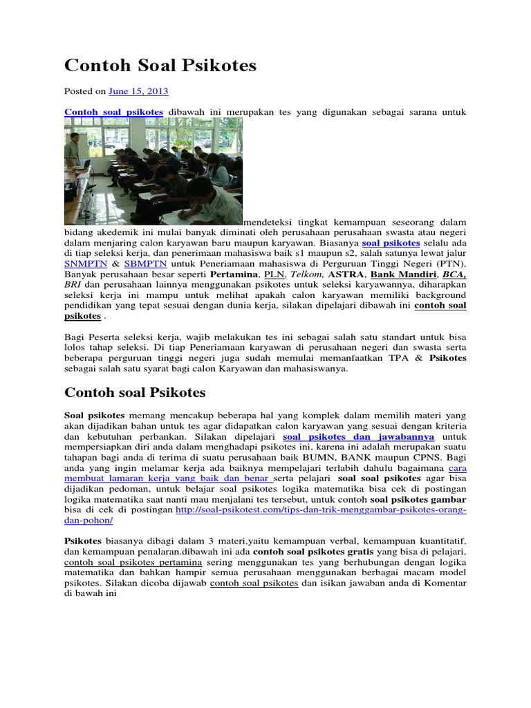 Contoh soal psikotes matematika (aritmatika). Untuk mengerjakan 1 unit rumah minimalist dibutuhkan waktu 36 hari dengan 12 tenaga kerja. Tes logika analisa pernyataan dan kesimpulan. Video #contohsoalcpnstiu2018logikamatematikanegasiingkaran membahas contoh soal cpns tiu 2018 logika matematika soal dibahas dengan #trikmengerjakansoalcpnstiu2018 atau #tipsmengerjakansoalcpnstiu2018 , dengan cara yang mudah dan sederhana. Selamat belajar ya ^_^ 1. Contoh soal un matematika smp tahun 2011 bagian 1. Berikut, 50 contoh soal cpns tes kemampuan bidang ( tkb) pendidikan beserta kunci jawaban. Contoh soal psikotes hitung hitungan berikut ini kami berikan bocoran 7 jenis soal psikotes yang sering keluar di bank, bumn dan pt lainnya yang disertai pembahasannya. Jika anda kurang tidur ditambah lagi dengan perut yang kosong, maka dijamin anda akan kesulitan untuk mengerjakan. Tes logika penalaran (deret gambar). Contoh soal psikotes logika matematika. Contoh soal tes skd dan skb. Yang menjadi penilaian dalam tes ini adalah.