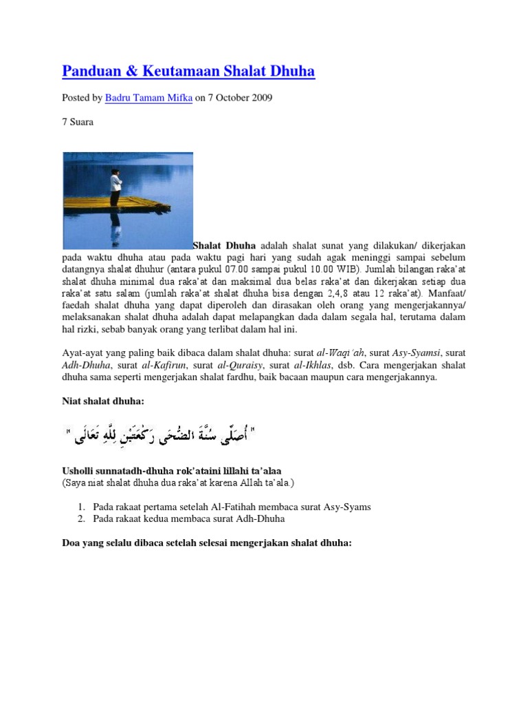 Surat Surat Shalat Dhuha from imgv2-2-f.scribdassets.com Bacaan do'a sholat dhuha latin. Shalat dhuha adalah shalat yang dilakukan setelah terbitnya matahari (syuruq). Lebih jelasnya di bawah ini dijelaskan asbabun nuzul surat ad dhuha lengkap dengan arab, latin dan terjemahannya dalam bahasa indonesia. Bisa surat adh dhuha atau lainnya. Ada satu fenomena menarik di kalangan kaum muslimin. Membaca surat atau ayat al qur'an. Berikut bacaan niat sholat dhuha lengkap arab, latin dan terjemahannya Membaca takbiratul ihram, diikuti dengan doa iftitah.