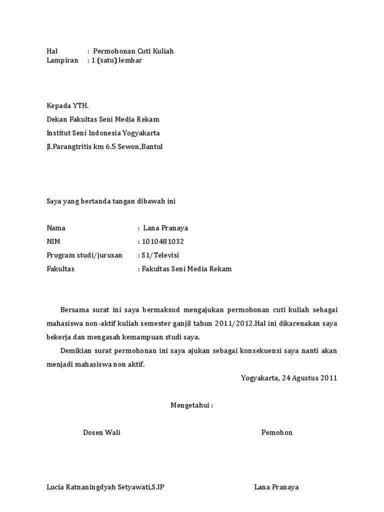 Contoh Surat Izin Kuliah Pdf : Contoh Surat Izin Rt : Contoh surat izin adalah sebuah surat yang dibuat dengan tujuan untuk meminta izin kepada penerima bahwa sang pengirim memiliki hajat / acara tertentu sehingga tidak bisa hadir atau melaksanakan kegiatan seperti biasanya.. Savesave contoh surat izin kuliah for later. 8 contoh surat cuti berbagai macam kegunaan sesuai keperluan. This file surat permohonan izin kuliah.docx is hosted at free file sharing service 4shared. Text of contoh surat izin kuliah. Surat izin tidak kuliah yang berbentuk seperti surat resmi.